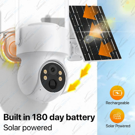 WiFi Solar 2K PTZ Camera – 4MP, AI Human Detect, Battery Powered, Outdoor CCTV